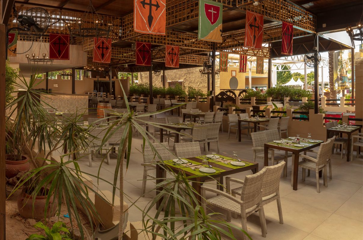 The resort has large indoor and outdoor spaces, with a water park, slides, cabins and spaces themed in medieval times, a multi-adventure park and even a large castle to host filming of all kinds.