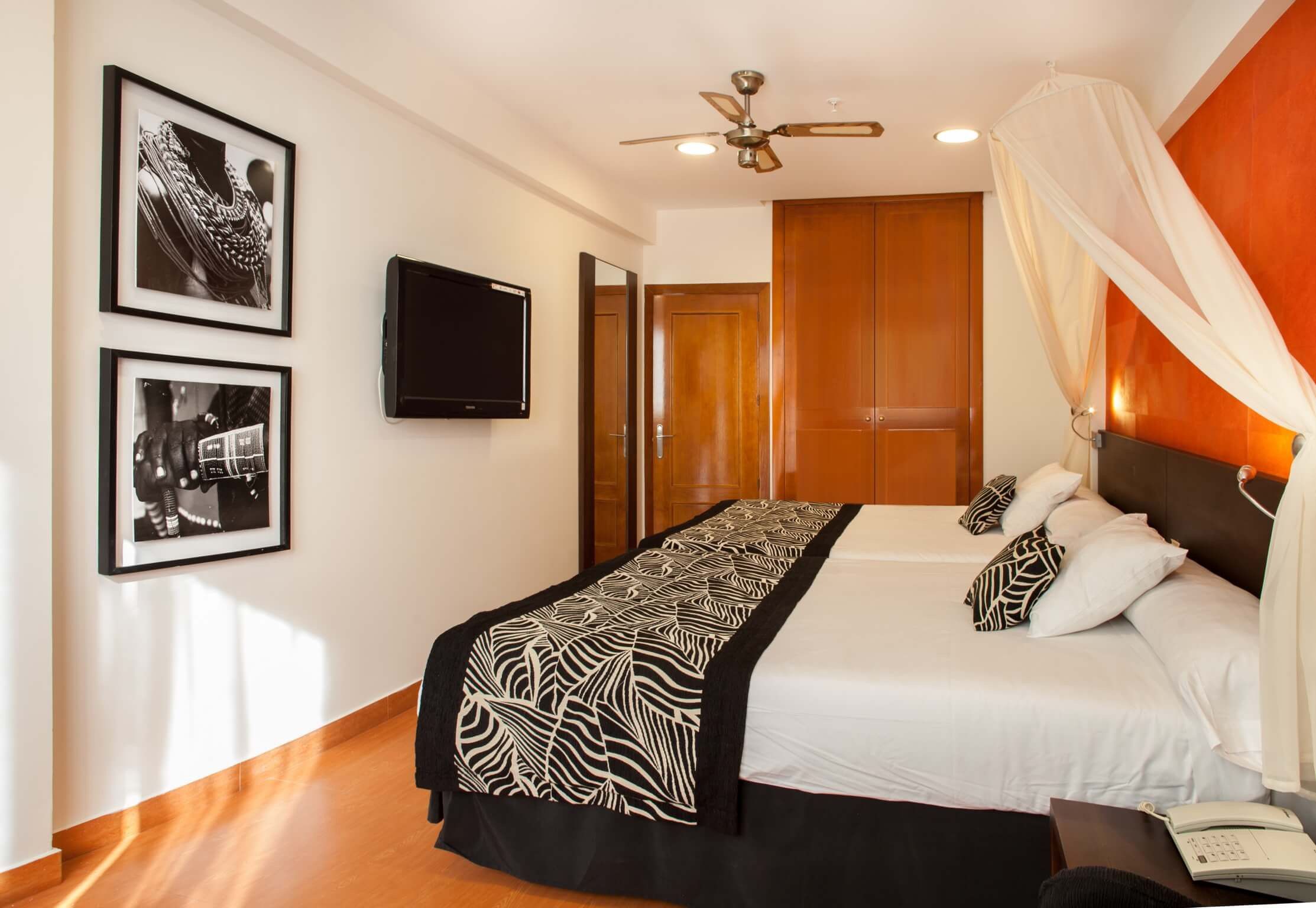 The ethnic design of our themed rooms will envelop you in an environment in which every detail has been carefully chosen to bring the essence of Africa to your holidays in Benidorm.