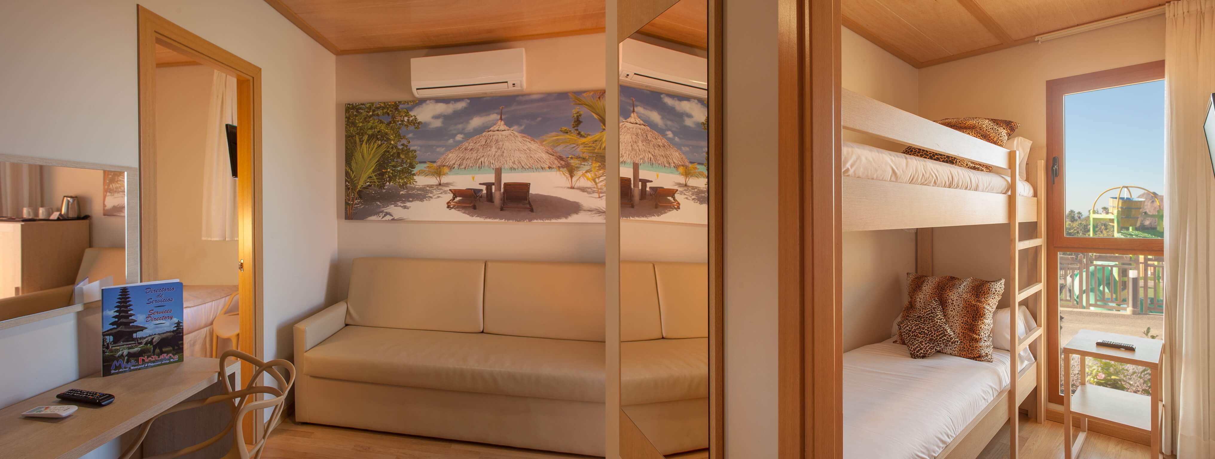 This wonderful resort inspired by Polynesia and located in the heart of Benidorm features private cabins (some with jacuzzi included), a delicious buffet and various themed restaurants, three swimming pools (two of them infinities), a spa and, in addition to great entertainment and fun shows, a kids’ club and a game room with next-generation videogames.