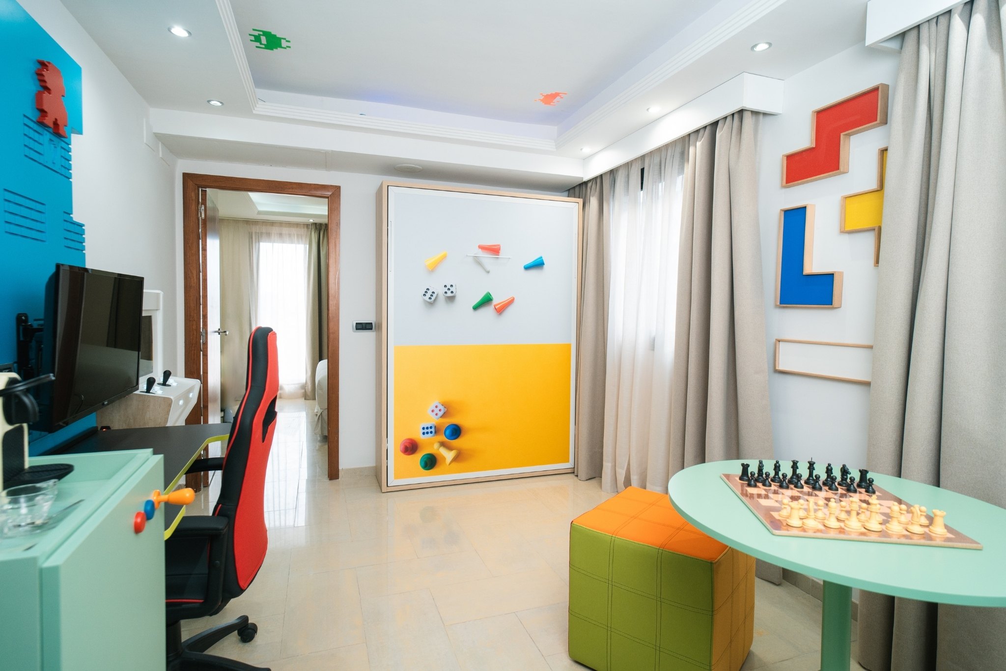 Immerse yourself in a universe of entertainment in our exclusive themed hotel specially designed for lovers of video games and board games. A unique family experience designed for everyone to enjoy. From the most classic retro games to the latest virtual generation, including classic family board games, so that you can share unique experiences with family and friends.